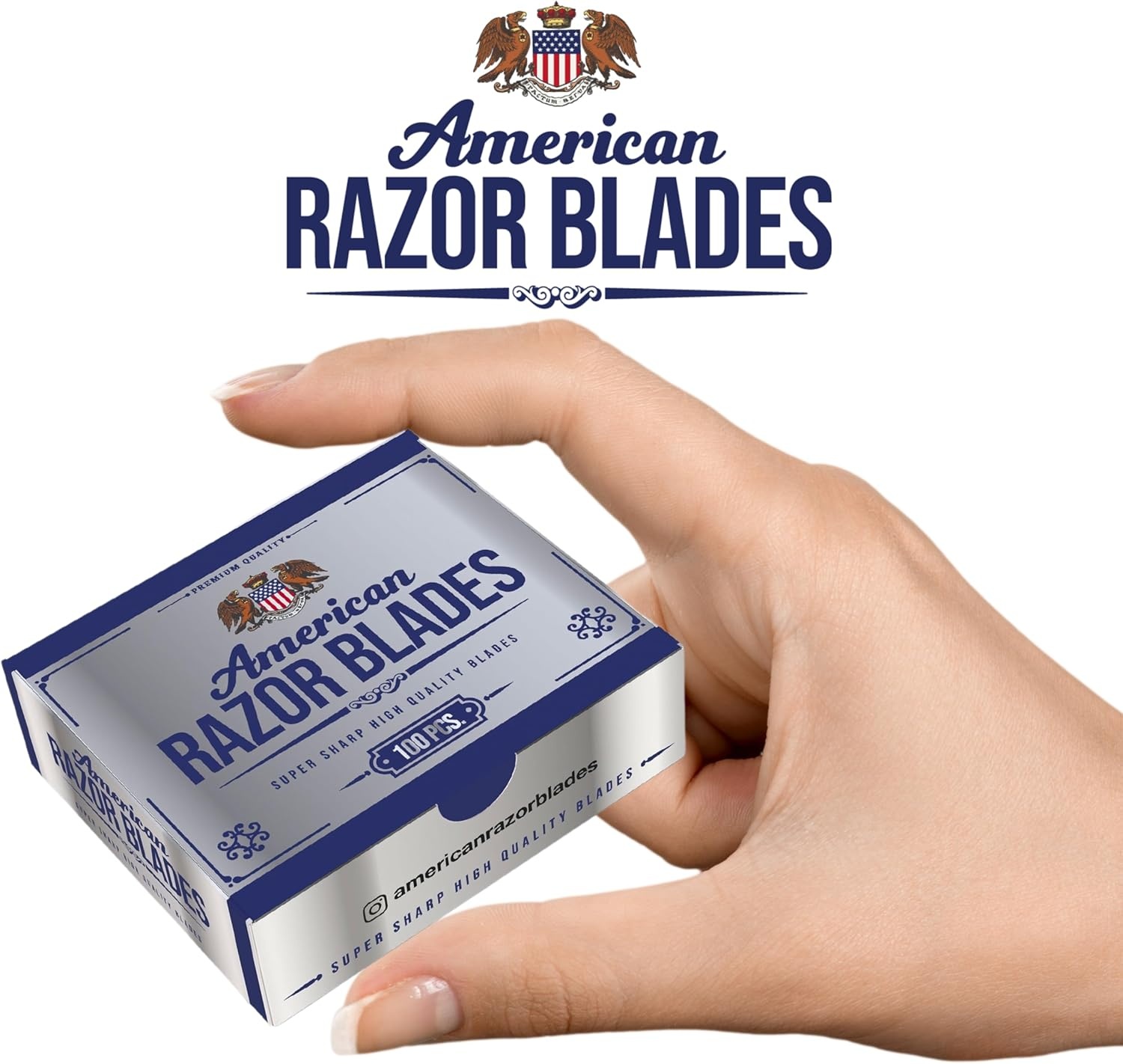 Deze Amerikaanse scheermesjes zijn ontworpen voor gebruik met single blades scheermessen en shavettes, voor de klassieke scheer ervaring. American Razor Blades zijn hoogwaardige scheermesjes voor zowel professionele kappers als traditionele scheerapparaten. Hun superieure kwaliteit, hoogwaardig staal en uitzonderlijke scherpte onderscheid deze single blades van de rest. Of het nu om dik of grof baardhaar gaat of het scheren van contouren en nekhaar, deze mesjes maken gemakkelijk een zuivere snede zonder de huid te trekken of te irriteren. Ze houden zich aan de Amerikaanse standaard van uitmuntendheid. Voor eenmalig gebruik, elke keer gemakkelijker en veiliger scheren. Ultrascherpe messen van hoge kwaliteit. Elk mes is zorgvuldig verpakt in papier met paraffine-reliëf voor bescherming en frisheid. Een kartonnen doos bevat 100 mesjes.