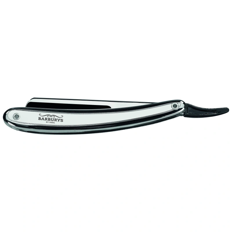 Het BARBURYS Agitator scheermes in zilver is een professioneel recht scheermes met een duurzame scheermeshouder van roestvrij staal. Dit scheermes is ontworpen voor zowel barbiers als veeleisende thuisgebruikers die streven naar een strakke en nauwkeurige scheerbeurt.