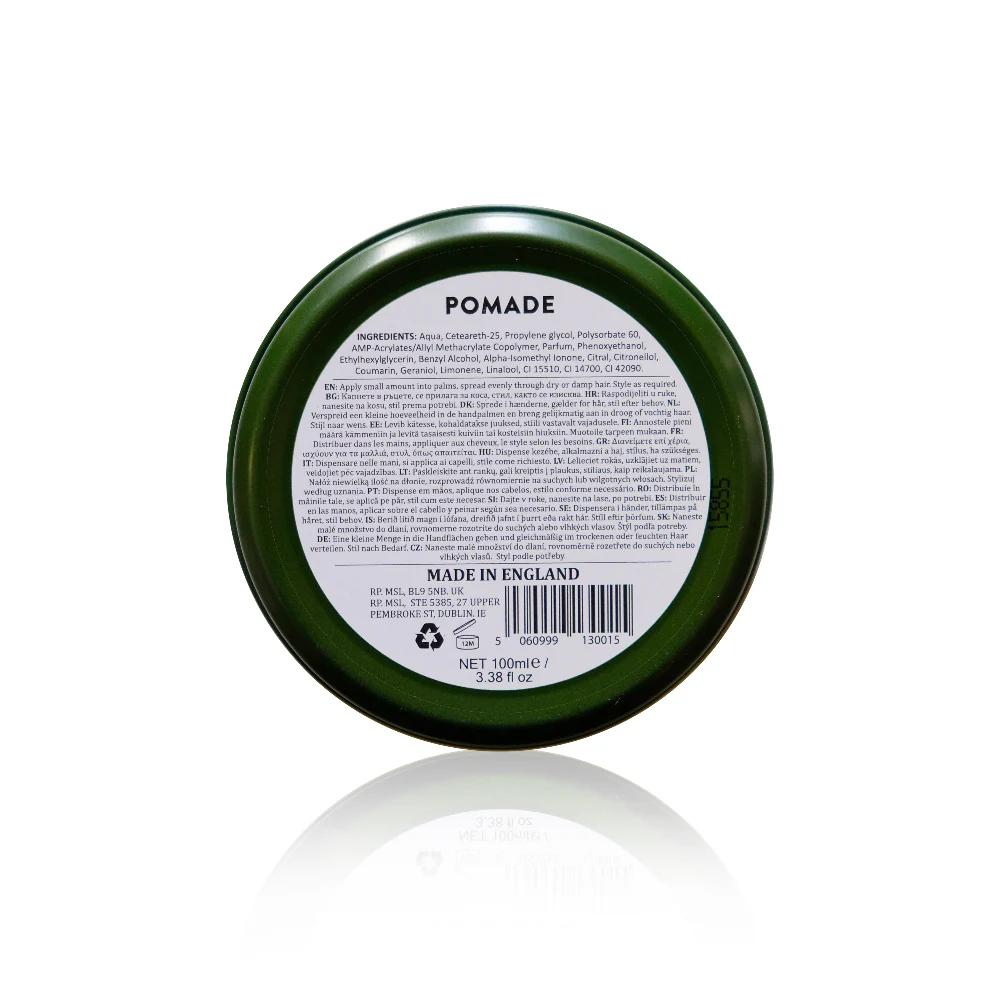 De pomade heeft een verfijnde geur van bergamot en leer, wat zorgt voor een luxe, mannelijke uitstraling.