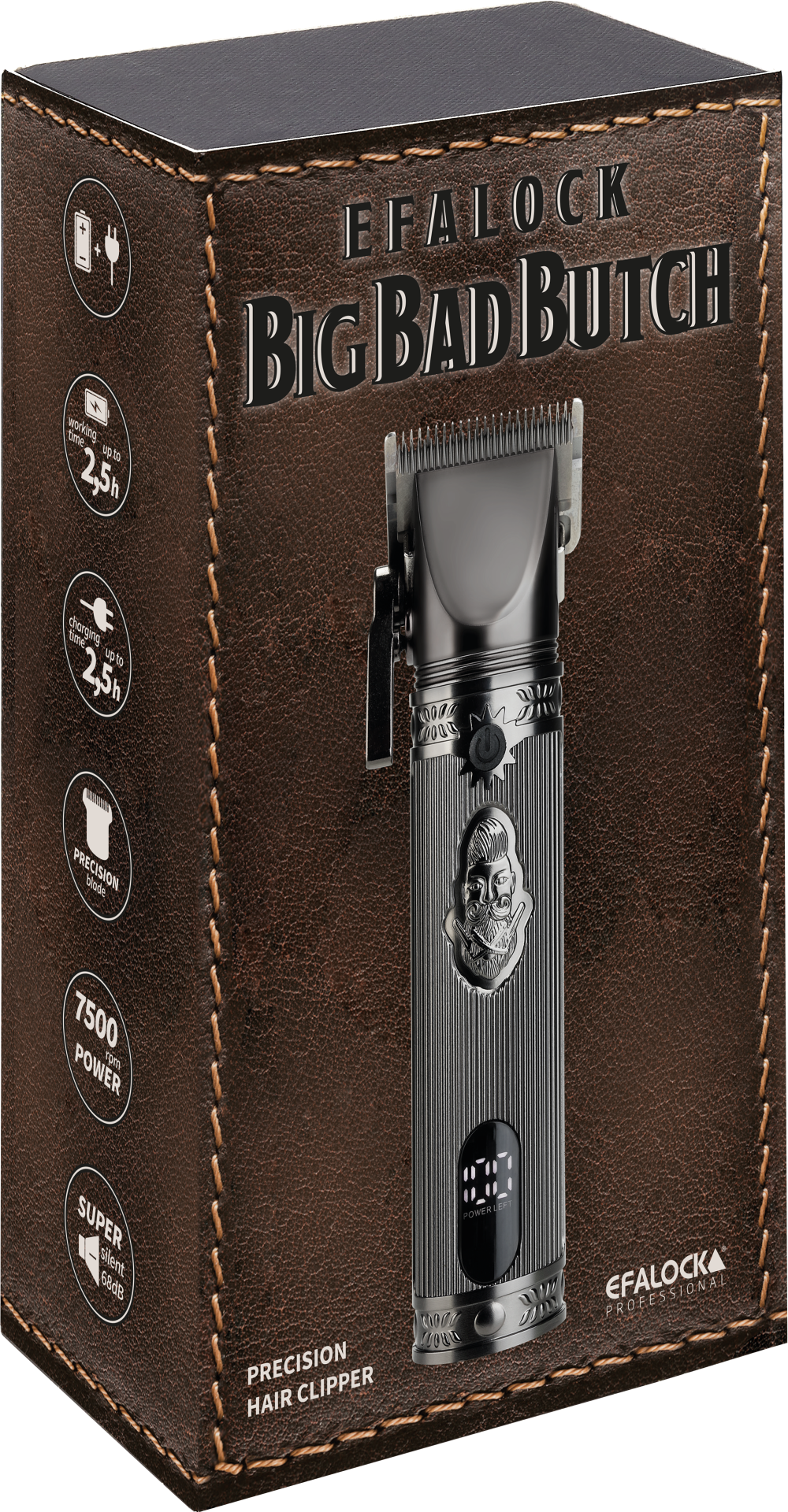 De BIG BAD BUTCH professionele hair clipper staat voor compromisloze kracht, maximale precisie en een stijlvol ergonomisch design. Deze hoogwaardige tondeuse is speciaal ontwikkeld voor barbers en kappers die dagelijks topprestaties eisen. Perfect voor strakke contouren, vloeiende overgangen en gedetailleerd knipwerk.