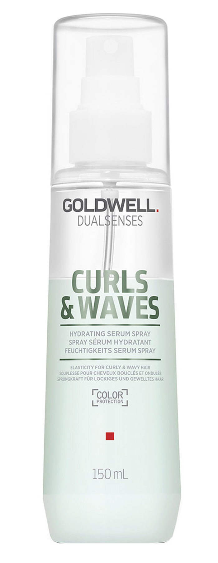 Goldwell Dualsenses Curls & Waves Hydrating Serum Spray is een leave-in spray voor natuurlijk golvend, krullend en gepermanent haar. Het bevat een mengsel van microPROtec Complex en melkeiwit, wat er voor zorgt dat het haar word versterkt en word hydrateerd. Wat weer resulteert dat je haar direct veerkrachtiger en levendiger word. Geeft een controle aan pluizen van het haar en zal minder kroezen, waardoor het haar meer gebundeld word en veerkrachtige krullen en slagen aan het haar biedt. Tevens biedt de spay bescherming tegen hitte van buitenaf, zodat het haar niet uitdroogt. Deze spray dient niet uitgespoeld te worden.