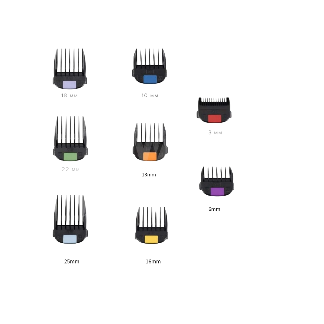 Dankzij de 8 verschillende lengtematen creëer je moeiteloos strakke fades, overgangen en diverse haarlengtes. De opzetkammen zijn duurzaam, eenvoudig te bevestigen en blijven stevig zitten tijdens het knippen.