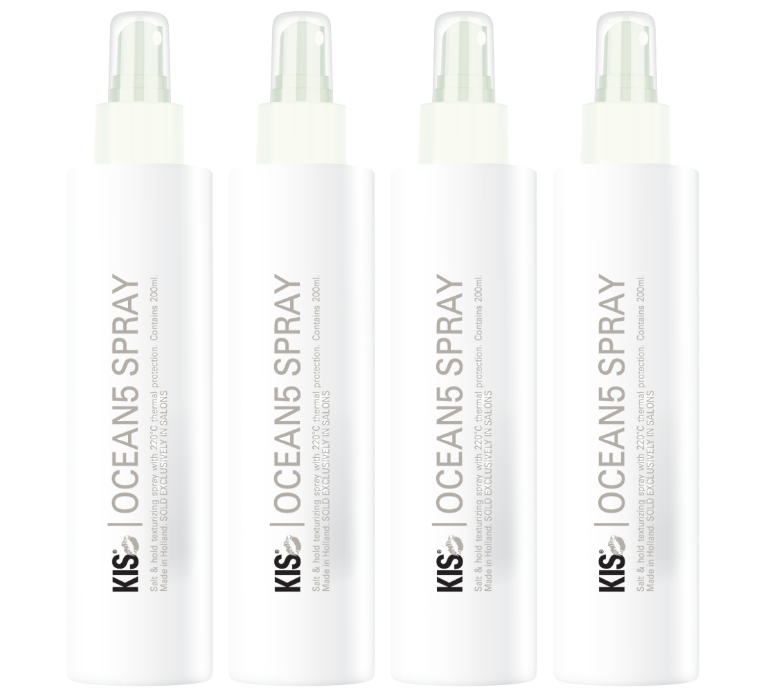 De KIS Ocean5 Spray is anders dan de bekende 'zout sprays' die natuurlijk al op de markt zijn, biedt Royal KIS Ocean5 Spray een aantal belangrijke extra’s die ervoor zullen zorgen dat uw klanten al snel verslaafd zullen raken aan dit fantastische product. Het biedt meerdere mogelijkheden in één. Deze spray kun je een ruige look creëren zoals na een dagje strand. Je wilt dan ook bescherming voor je haar dat het niet droog word en daar zorgt de UV-B filter voor. Verder kun je de Ocean Spray gebruiken om je haar mee te stylen omdat er een hitte beschermer in zit die het haar beschermd tegen uitdrogen en verbranden, tot een maximale temperatuur van 220 graden. Met de Ocean5 haal je een alles kunner in huis voor je haar, wat wil je nog meer.