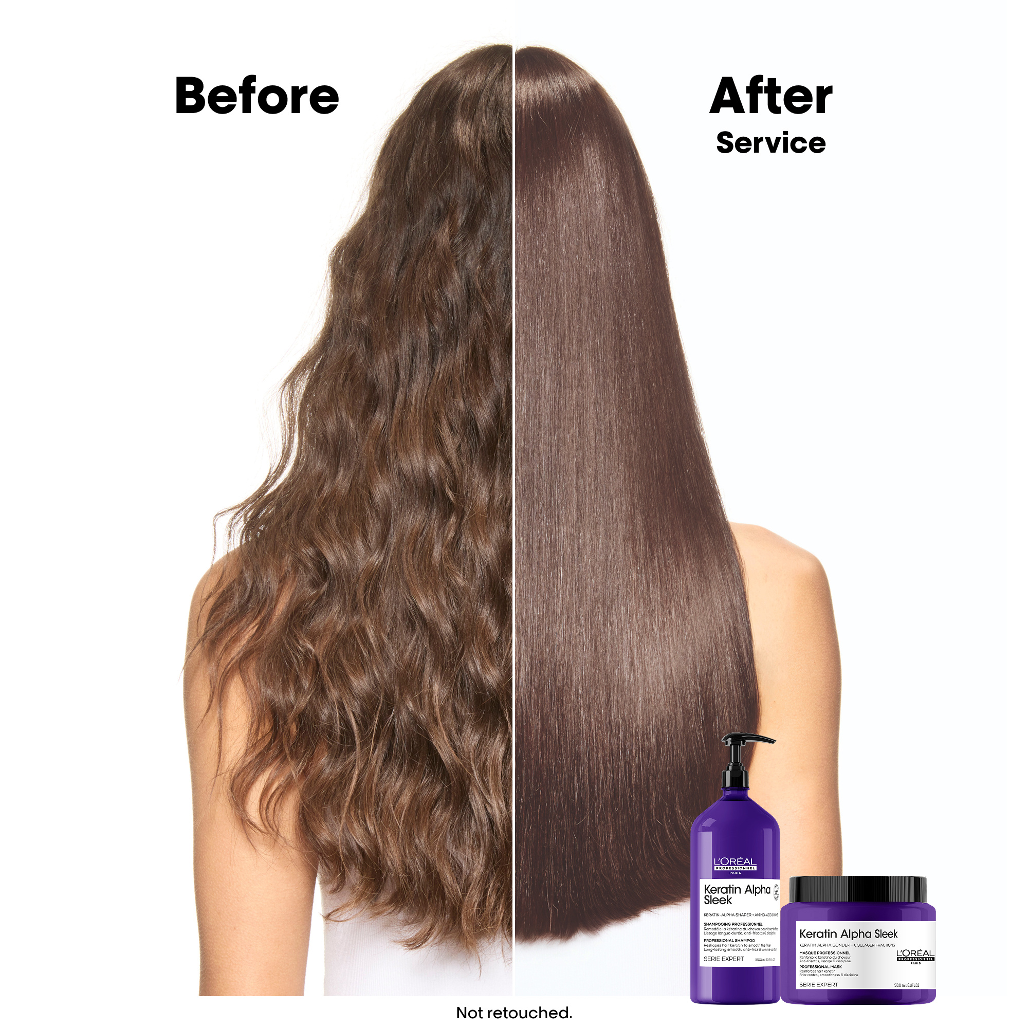 *Resultaten bij gebruik van de volledige Keratin Alpha Sleek routine