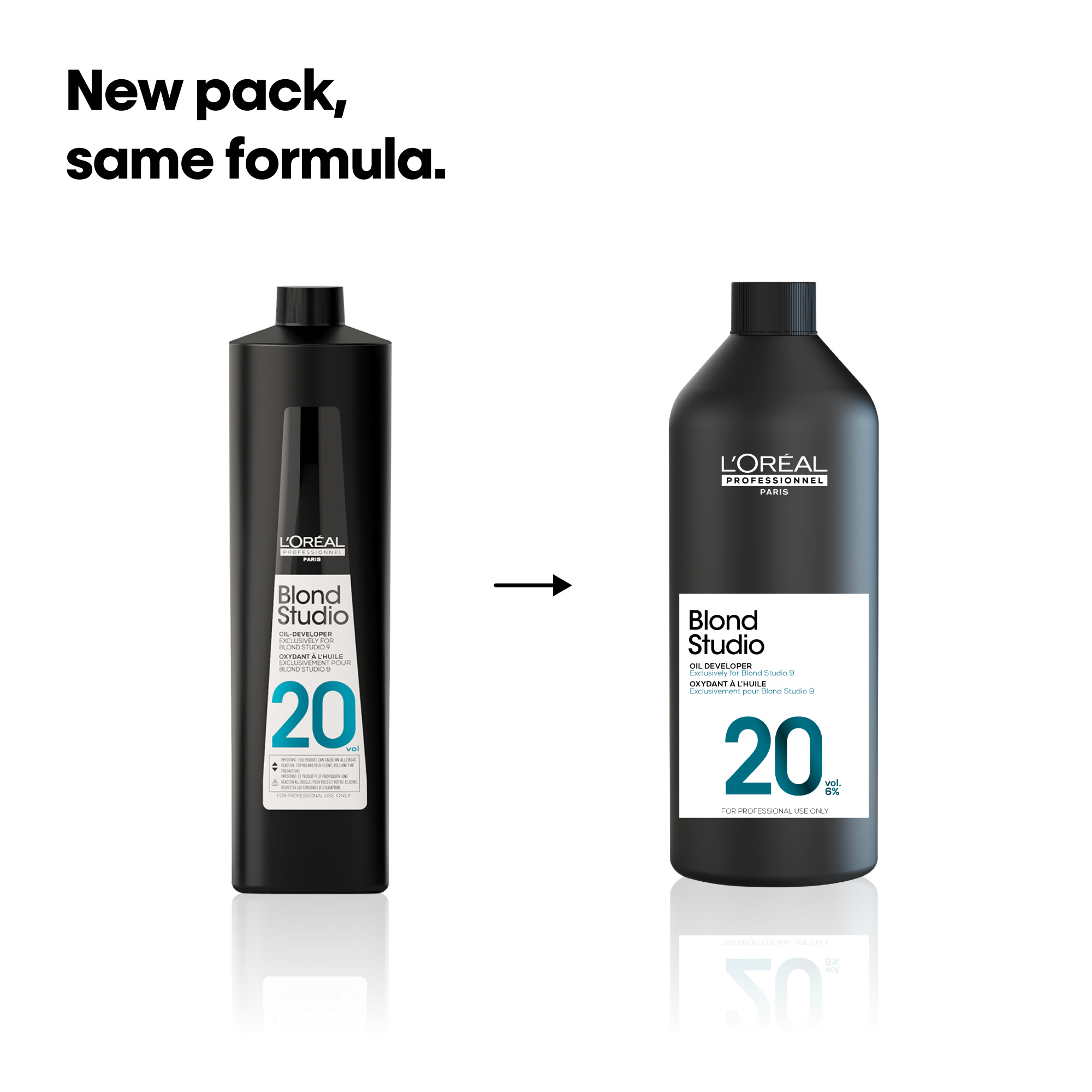 L'Oréal Professionnel Blond Studio Oil-Developer is geschikt voor het ontkleuren van het haar in combinatie met Blond Studio Multi-techniques 9. De oxidant heeft 2 verschillende sterktes: 20 vol en 30 vol. De keuze voor het volume hangt af van de conditie van het te behandelen haar en het gewenste resultaat. De luxe oxidant is verrijkt met zachte bestanddelen die het lipiden gehalte van het haar in stand houden , in combinatie met een verheldering tot wel negen tinten.