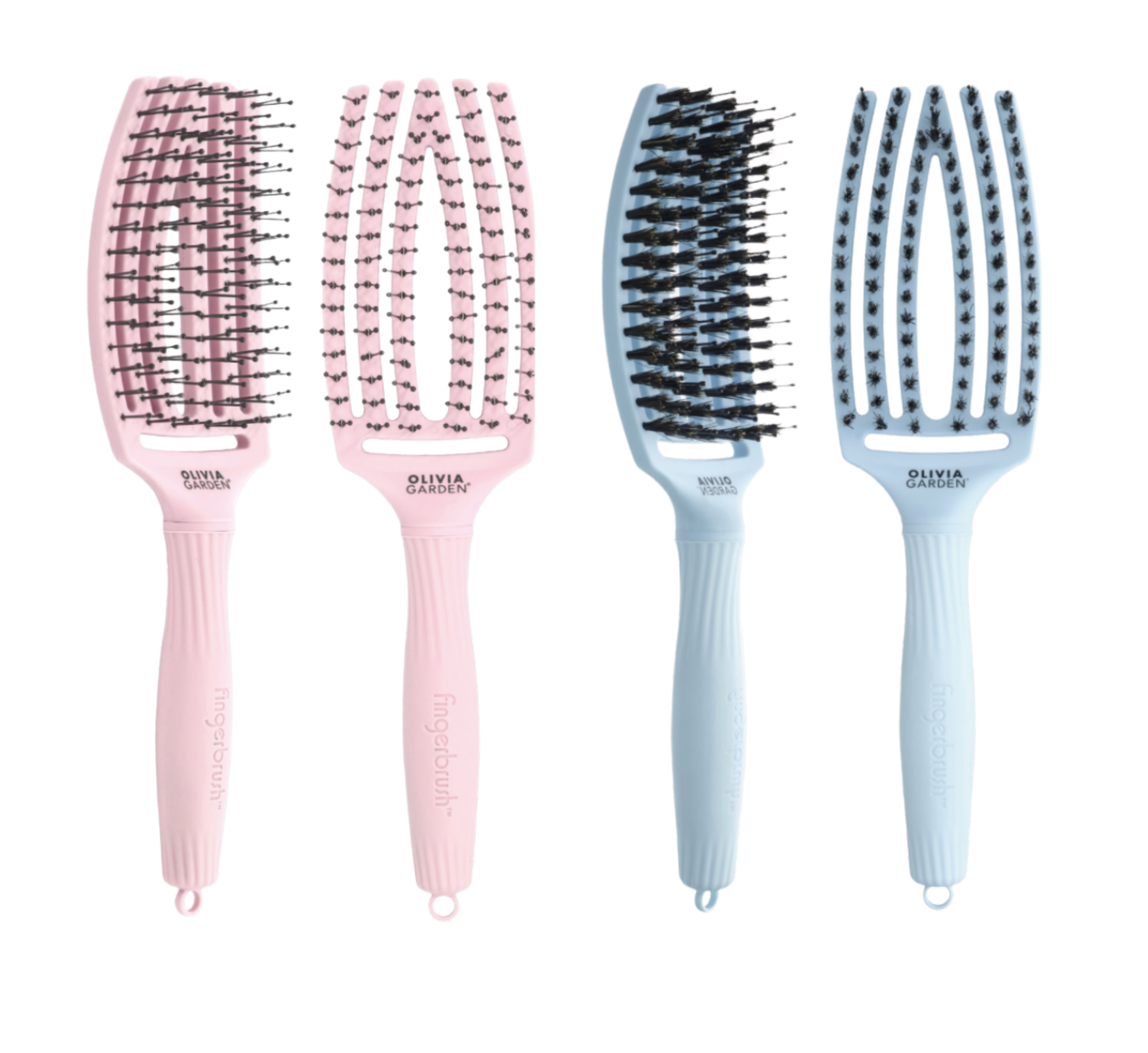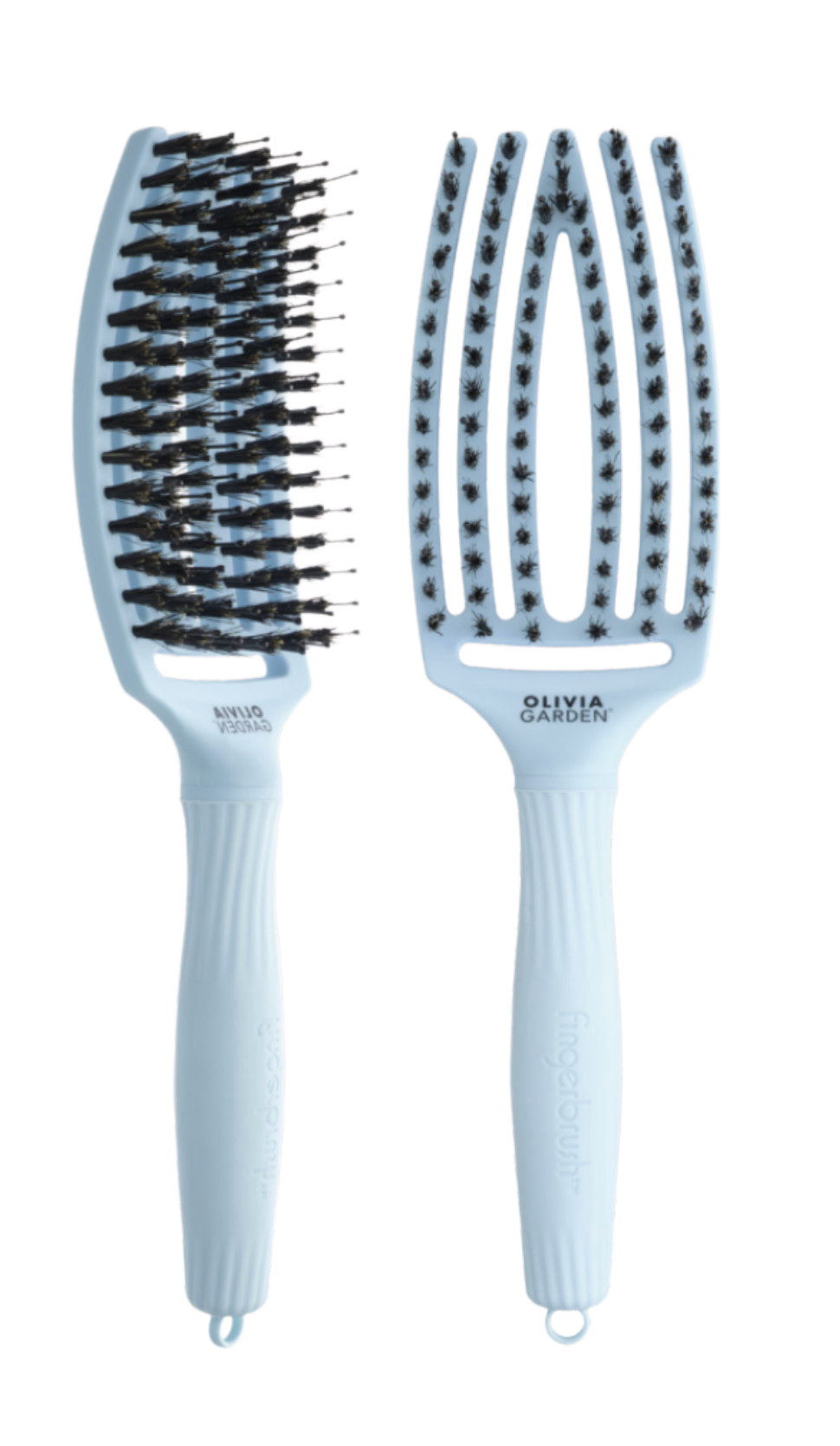 Voor haar dat fijner valt, steil is of zacht golvend, grijpen zij naar de Fingerbrush Boar & Nylon Pastel Blue. De borstelharen glijden als een stille streling en zorgen voor zachtheid, glans en moeiteloos ontklitten.