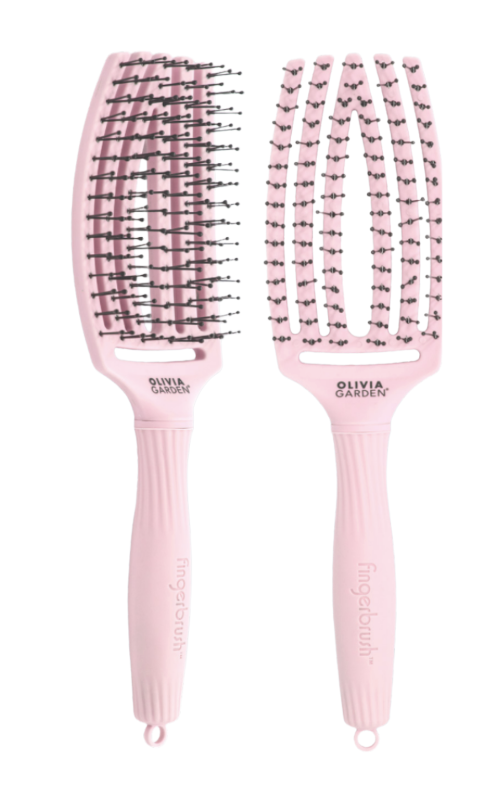 Olivia Garden Finger Brush Combo Medium volle haarborstel. De set bevat 8 M-formaat Finger Brush-haarborstels. De hoogwaardige, unieke borstel die zich aan de vorm van het hoofd aanpast, ontwart het haar prachtig dankzij de everzwijnhaar borstelharen en nylon plastic spikes.Wat een uniek design heeft deze borstel! In de vorm van een hand. Licht gebogen paddle borstel met openingen. Hoe makkelijk voor het föhnen? Ook voor het masseren van de hoofdhuid. Zowel op nat als op droog haar toepasbaar.