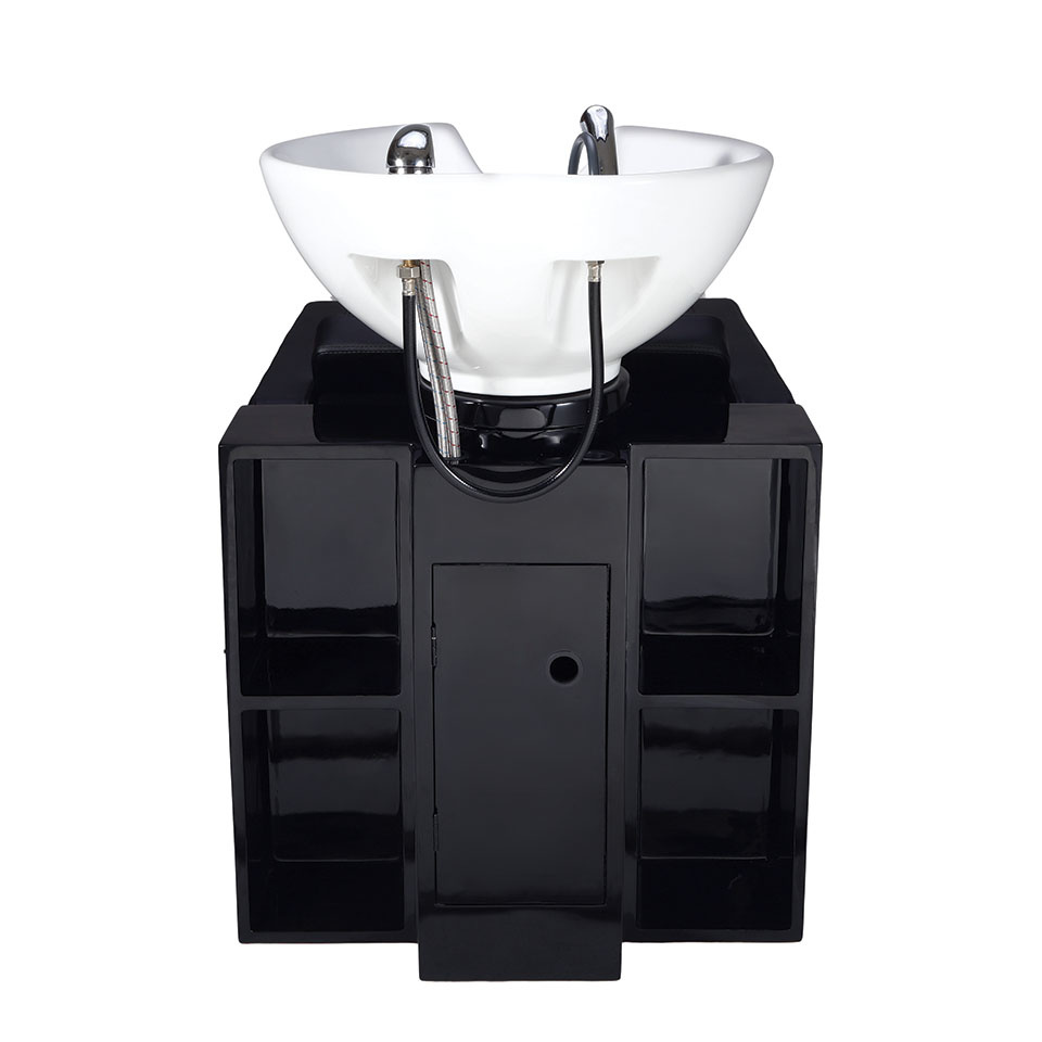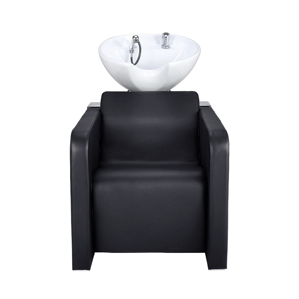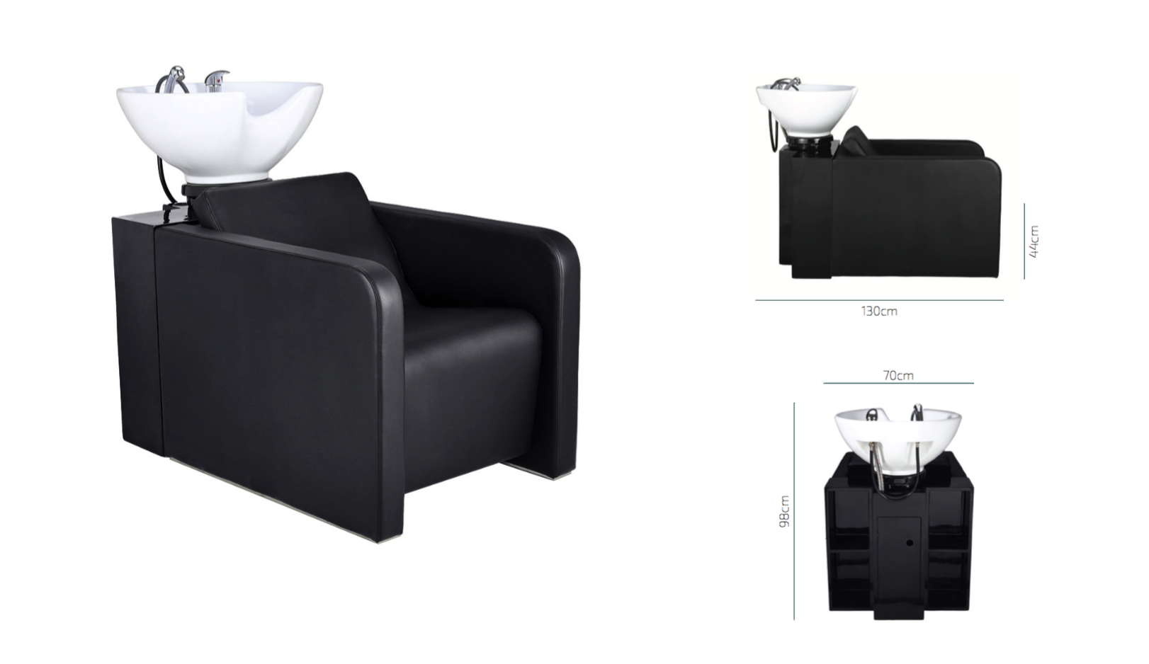 Deze werkelijk prachtige wasunit zit erg comfortabel en heeft een prettige ruime zit. kapper aan de De Wasunit Jacob is alleen in het zwart leverbaar. De Jacob heeft aan de achterkant handige plankjes voor shampoo e.d. De bekleding is van brandwerend PVC. Dit maakt de wasunit ook geschikt voor overheids gebouwen, zoals scholen en ziekenhuizen. De waskom word geleverd in het wit of zwart. Een witte waskom werkt prettiger doordat je de kleur van het haar beter kunt zien en omdat een zwarte waskom snel kalk vlekjes laat zien ( zwart+poetsen ). De Jacob is voorzien van een handig service luikje aan de achterkant, waardoor hij eenvoudig aan te sluiten is. waterleiding ook De fraaie details geven de Jacob net dat tintje extra. De handdouche is voorzien van een Aquastop, waardoor er geen water langs de leiding kan druppen op de vloer. U ontvangt een duidelijk installatie schema bij de wasunit. Wilt u een schema ontvangen, voor u besteld, geen probleem, mail dan even.