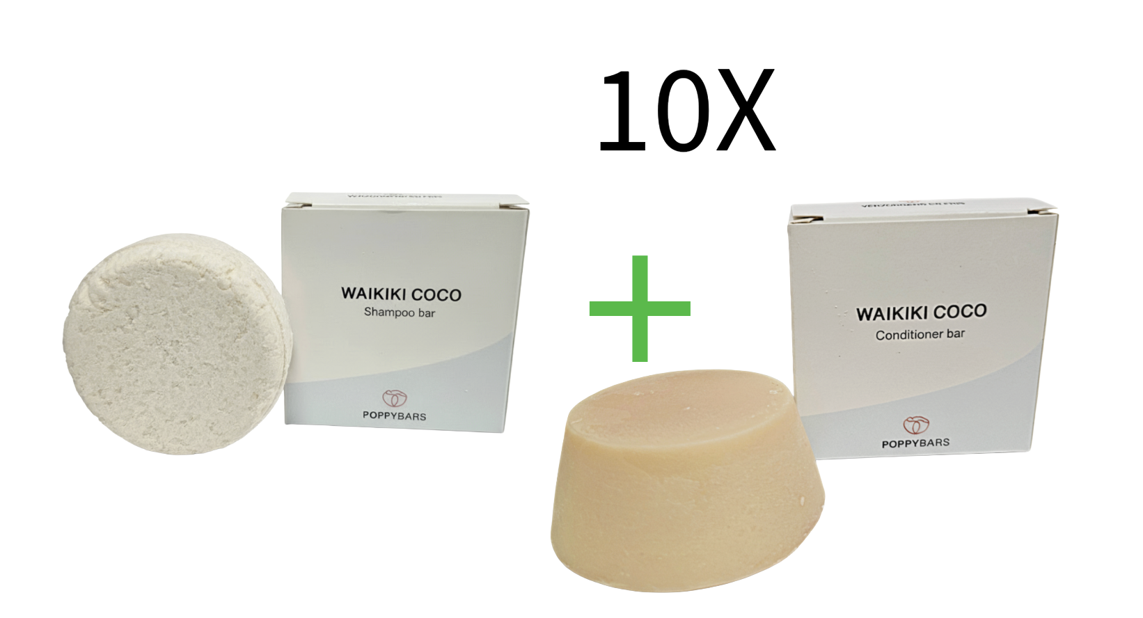 POPPYBARS Droge Hoofdhuid - Waikiki Coco 60gr - Shampoo + gratis Conditioner 10 STUKS