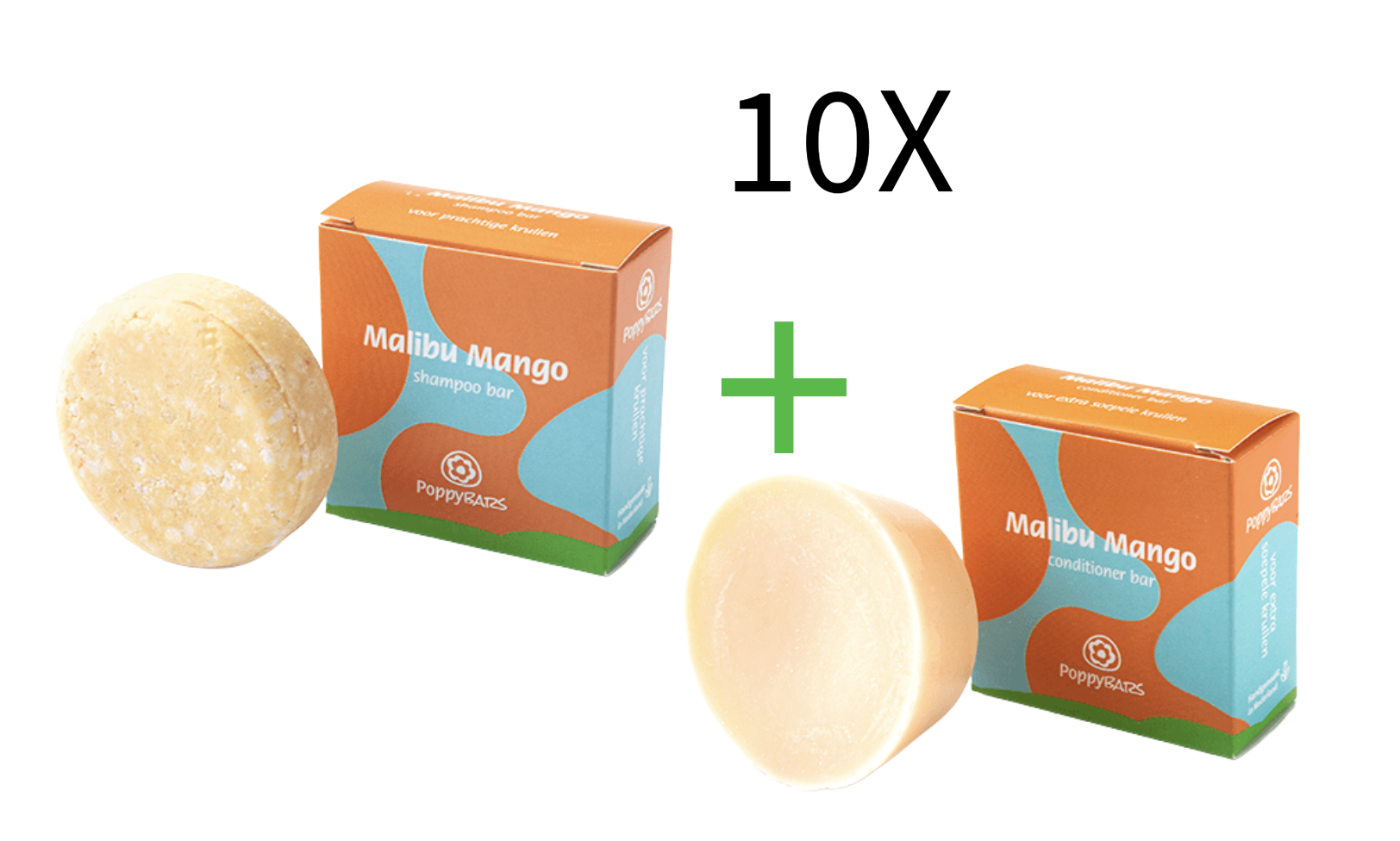 POPPYBARS Krullend Haar - Malibu Mango 60g - Shamppo + gratis Conditioner 10 STUKS