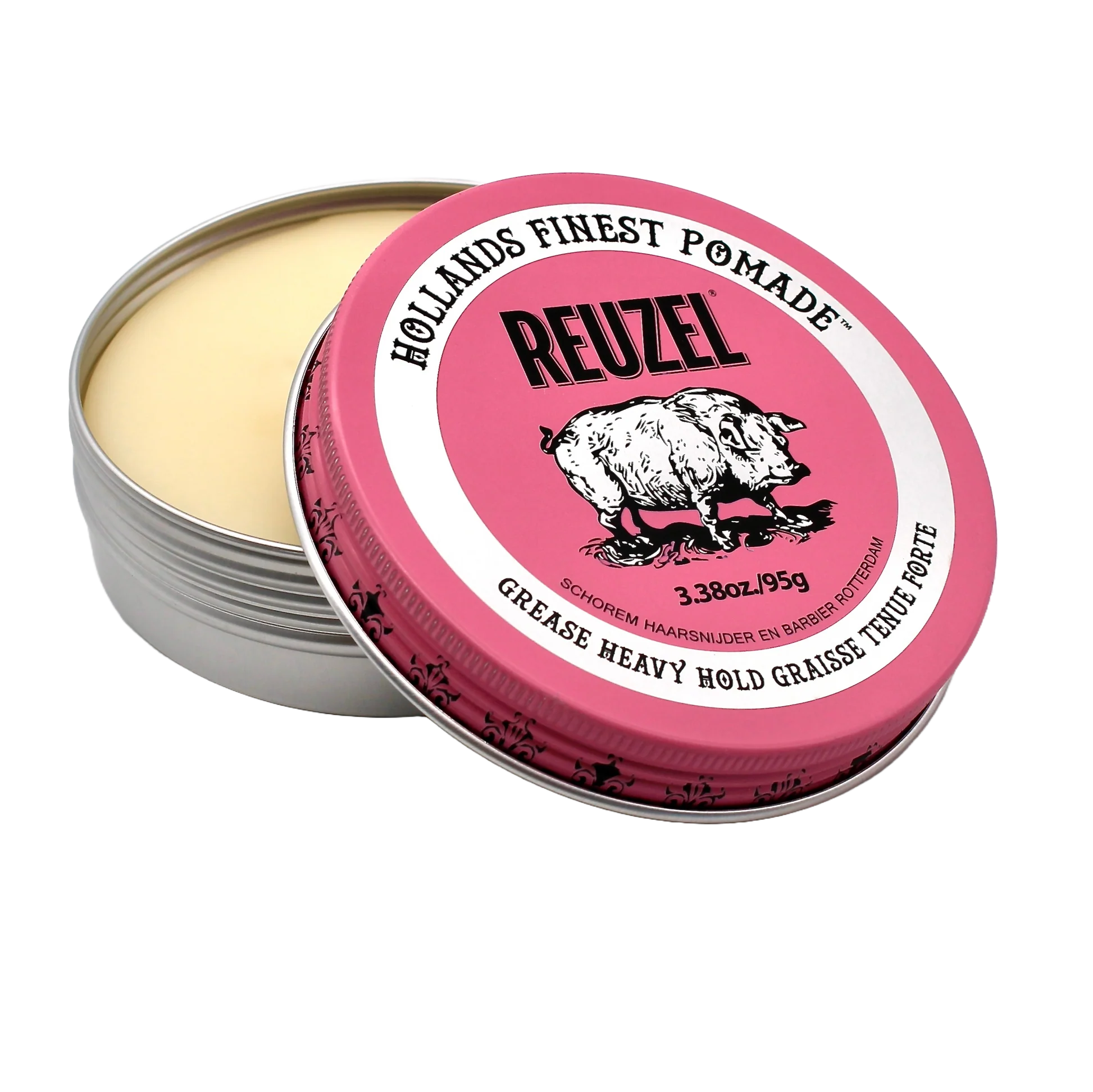 REUZEL Pink Pomade Grease is dé keuze voor mannen die een sterke pomade met maximale hold zoeken voor klassieke kapsels, vooral bij dik of krullend haar.