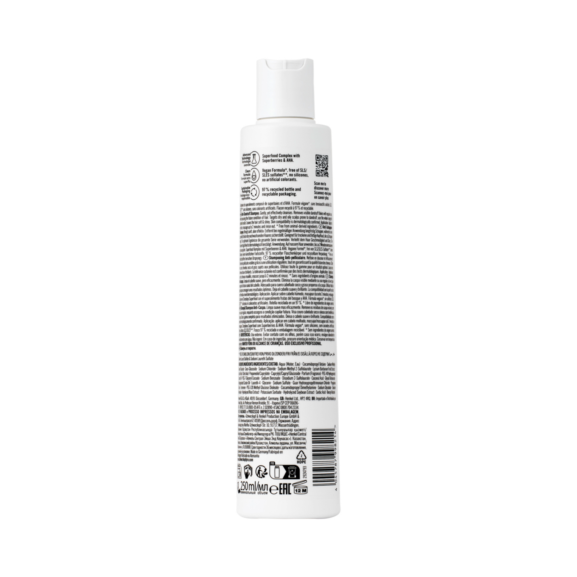 Dermatologisch goedgekeurd voor een hoofdhuid die gevoelig is voor roos, Bonacure Anti-Dandruff Shampoo is een zachte, maar effectieve cleanser die zichtbare roosvlokken van de hoofdhuid verwijdert dankzij de krachtige anti-schimmel eigenschappen. De pH-gebalanceerde, vrij-van* en veganistische** formule met Superfood Complex is verrijkt met Superbessen en AHA, waardoor de hoofdhuid opnieuw in balans komt en het haar soepel en glanzend wordt. Geschikt voor dagelijks gebruik.