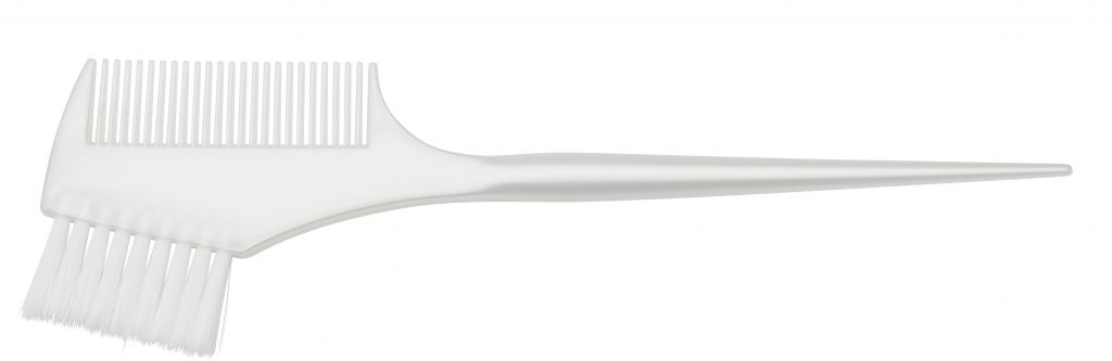 Deze verfkwast met afgeschuinde punten voor het precies verven van het haar van wortel tot haarpunt. Voorkomt een teveel aan kleur op de huid.