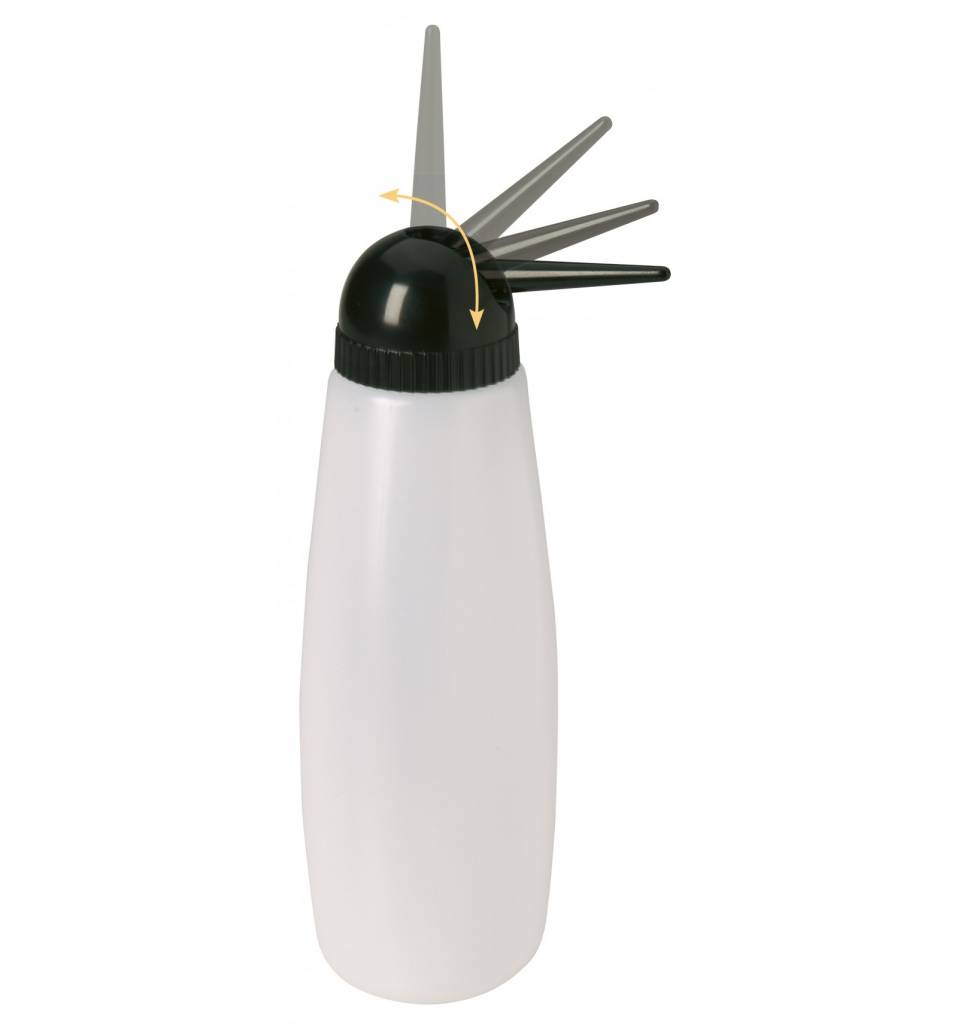 Doseer/applicatiefles met draaibare opening - vergemakkelijkt het aanbrengen op bepaalde zones, bijvoorbeeld in de nek.
