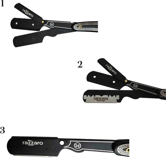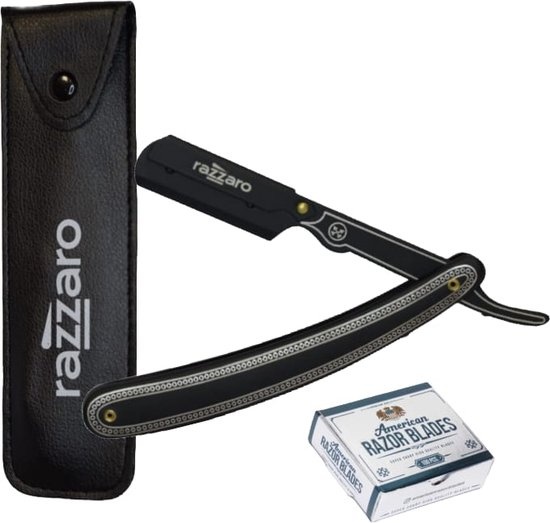 Razzaro Straight Razor Black / Silver + 100 American Razor Blades - -