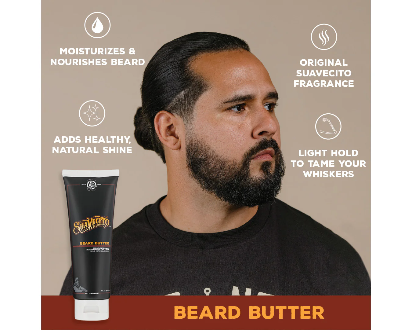 Suavecito Beard Butter voedt, hydrateert en verzacht je baard en geeft een lichte hold om je snorharen de hele dag op hun plek te houden. Gebruik dit product dagelijks voor een optimale baardgezondheid.